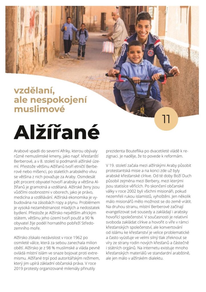 Většina Alžířanů jsou vzdělaní lidé. Alžírské ženy jsou vůdčími osobnostni v oblastech jako je medicína. vzdělánání a právo. Mezi původními Berbery jsou i křestané a ti zakládají společenství.
