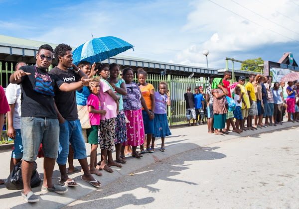 Pro Wilfreda běžná scéna – autobusová zastávka u centrální tržnice v Honiaře