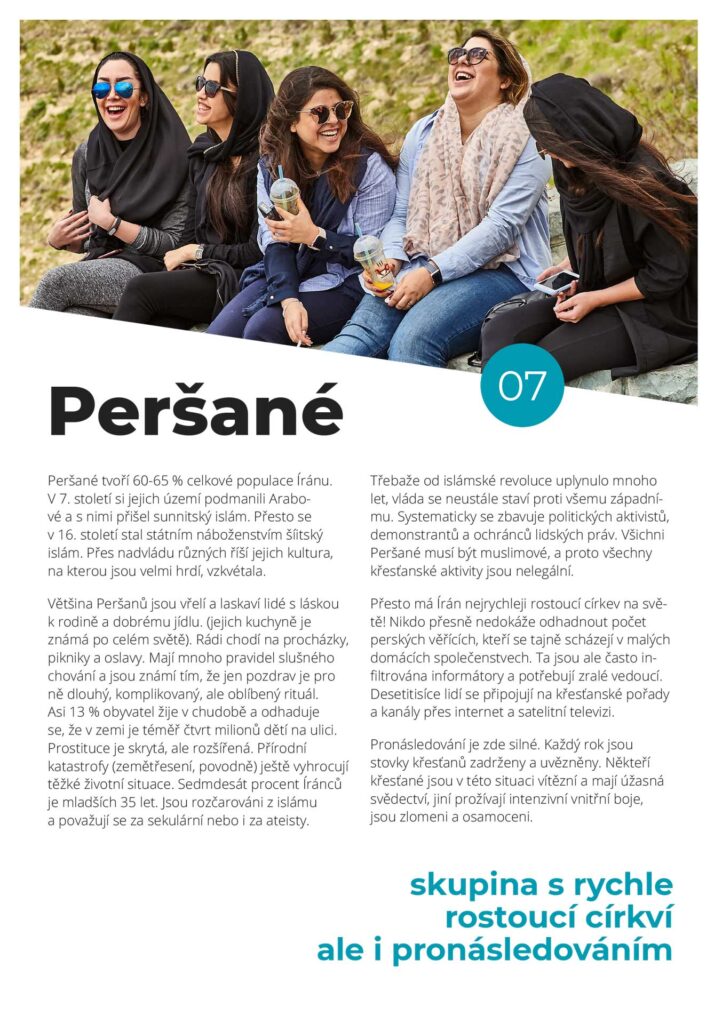 Peršané jsou hrdí na svou kulturu, která vzkvétala i přes nadvládu různých říší. Křesťanství je v zemi nelegální. Přesto má Irán jednu z nejrychleji rostoucích církví na světě.