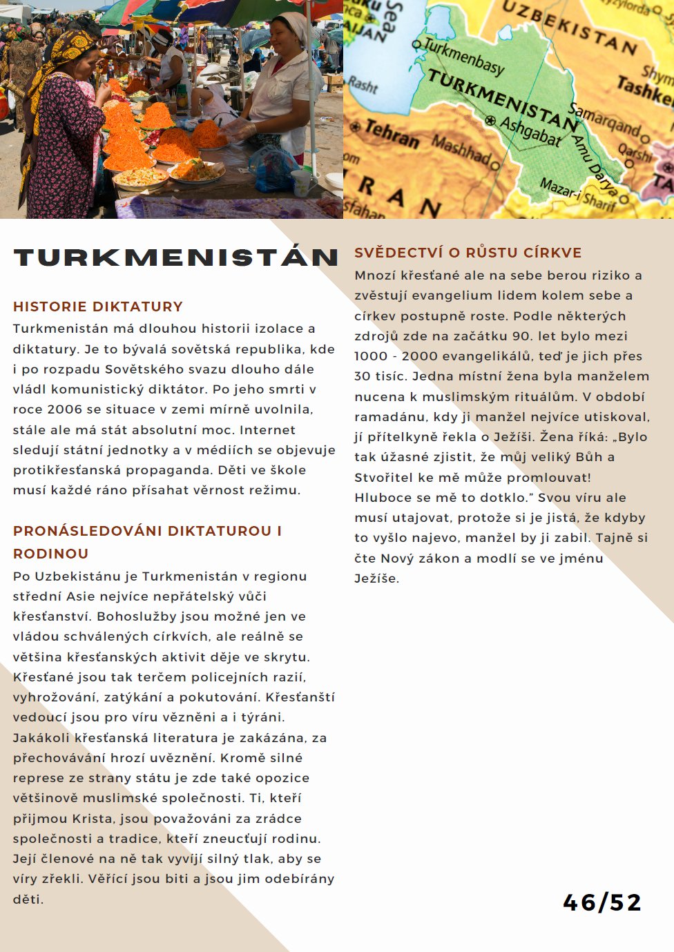 Po Uzbekistánu je Turkmenistán v regionu střední Asie nejvíce nepřátelský vůči křesťanství.