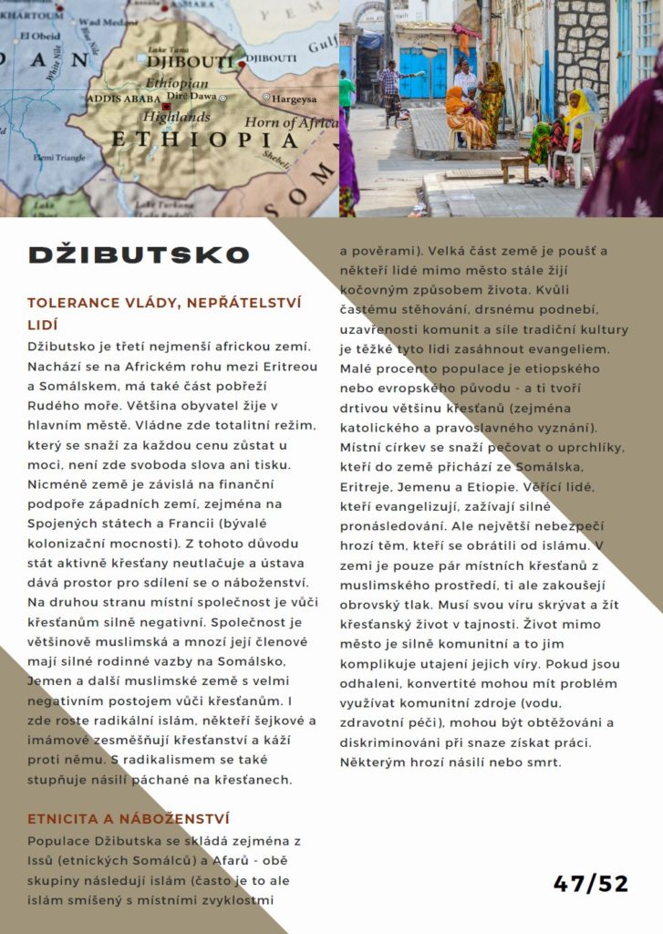 Džibutsko je třetí nejmenší africkou zemí. Nachází se na Africkém rohu mezi Eritreou a Somálskem, má také část pobřeží Rudého moře.