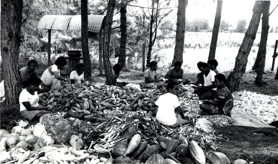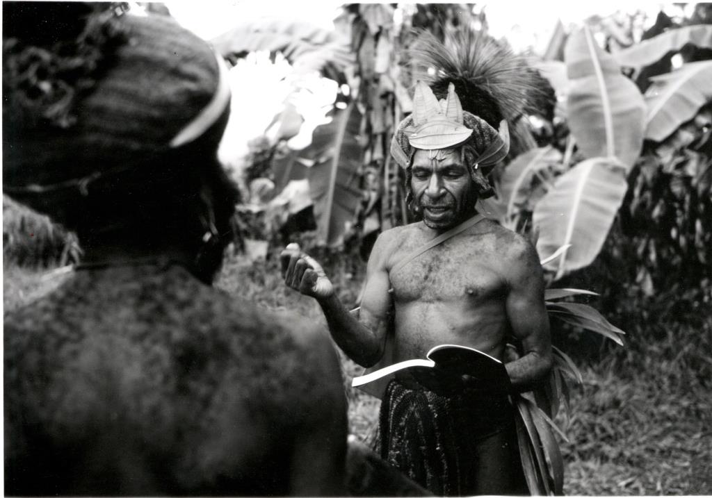 „Ty víš, že věci musí být vždy vyrovnány. Ale někdy se to vyrovnání nepodaří, přinejmenším ne úplně. Především, když se jedná o vlastní lidi. Něco podobného se přihodilo s kmenem Wótale. Není to tak dávno. Založili jsme si novou zahradu a nějaký Wótálec kácel jeden z velkých stromů. Kousek dál na svahu pracovala na ságové palmě jedna žena. Věděli navzájem o své přítomnosti a Wótálec jí několikrát říkal, že má odejít, ale ona chtěla ještě trochu pracovat. Věděla, že to ještě potrvá nějaký čas, než tak velký strom padne, a tak pracovala dál. Když Wótálec dokončil zářez, volal znova, aby šla dolů, ale ona ještě pořád neodešla. Potom náhle – mnohem dříve, než všichni očekávali – strom zaskřípal a začal padat. On volal a ona utíkala, ale bylo příliš pozdě. Strom padl právě na ni a rozbil jí lebku. Žena zemřela.