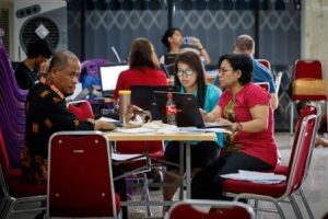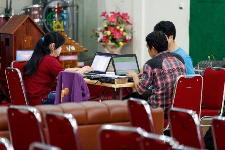 Člen personálu organizace Kartidaya Darius Devaprasat Sinamohina vede jeden z překladatelských týmů.